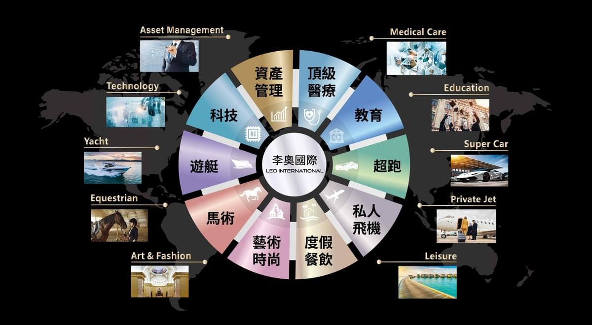 為支持三大核心支柱,李奧國際集團整合多領域且完整的生態體系,涵蓋私人航空、遊艇與碼頭、馬術平台、超級跑車、藝術、酒店管理及高端生活方式策劃服務。